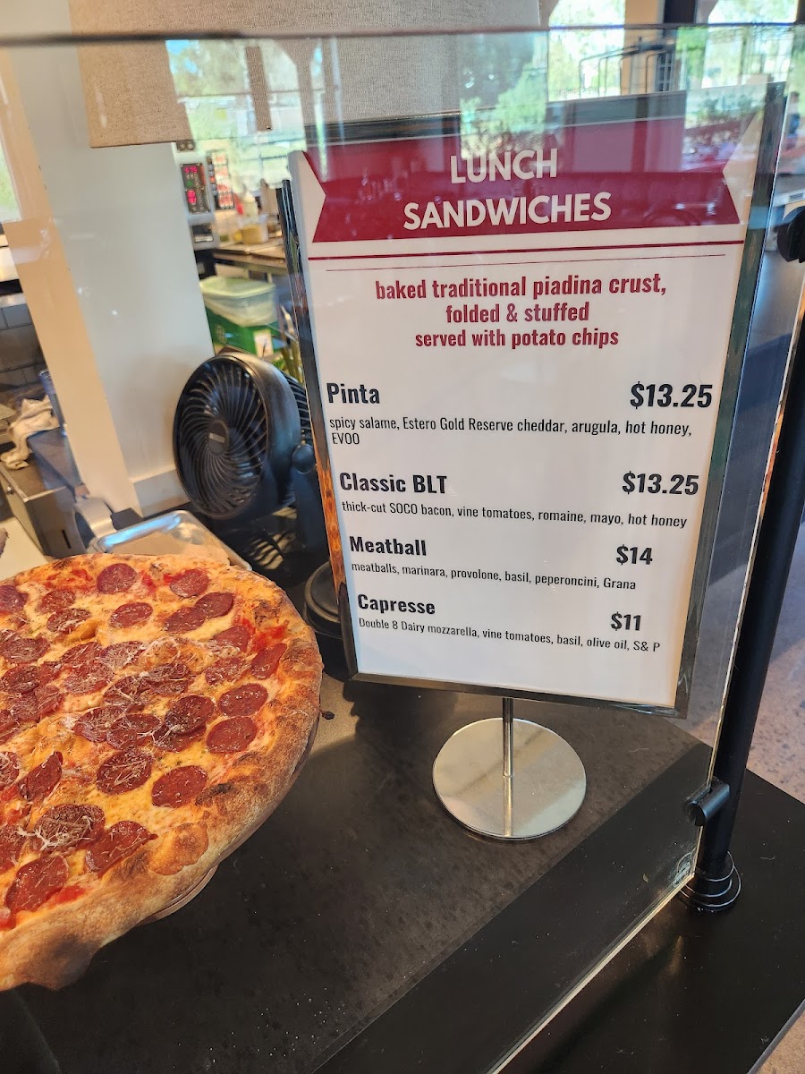 SOCO Meat Co. Italian sausage, bacon, Zoe’s pepperoni, mozzarella, Pecorino Romano, spicy marinara, wild oregano